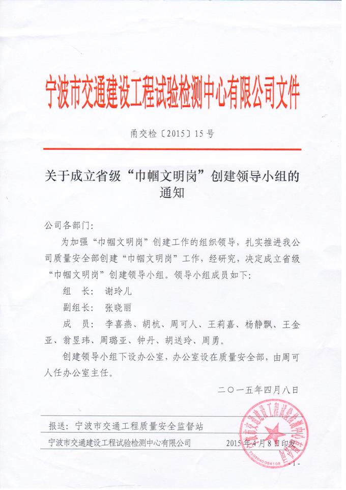 關(guān)于成立省級“巾幗文明崗”創(chuàng)建領(lǐng)導(dǎo)小組的通知