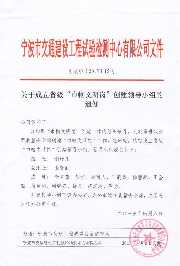 關于成立省級“巾幗文明崗”創(chuàng)建領導小組的通知