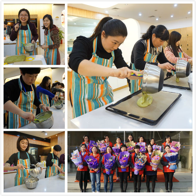 攪拌,烘烤,裱花……烘焙教室里彌漫出濃濃的抹茶蛋糕香氣。為紀(jì)念“三八”國(guó)際勞動(dòng)?jì)D女節(jié),讓公司女職工過(guò)一個(gè)難忘而有意義的節(jié)日,在公司領(lǐng)導(dǎo)的關(guān)心和支持下,工會(huì)開展了以烘焙為主題的婦女節(jié)活動(dòng)。